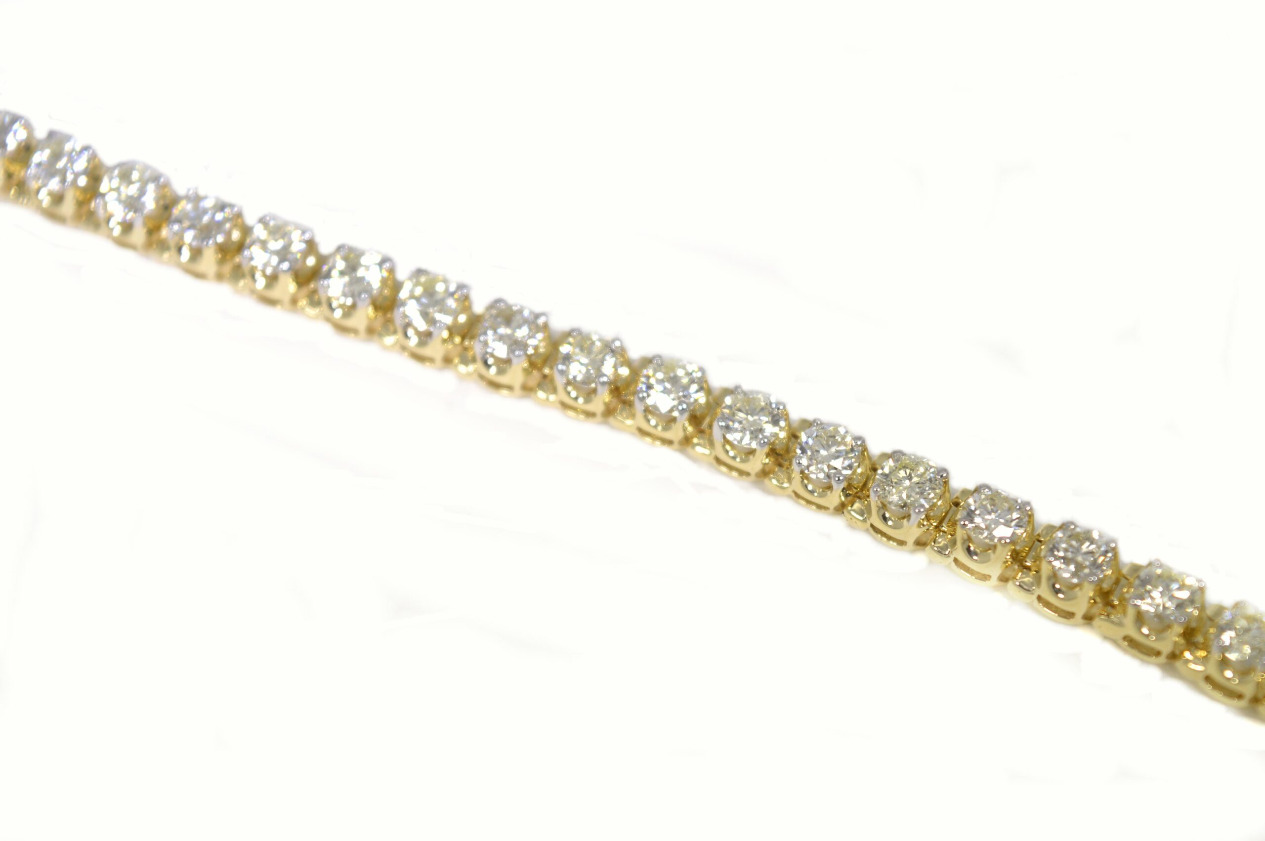14kt yellow gold ladies round diamond tennis bracelet 7.00cttw